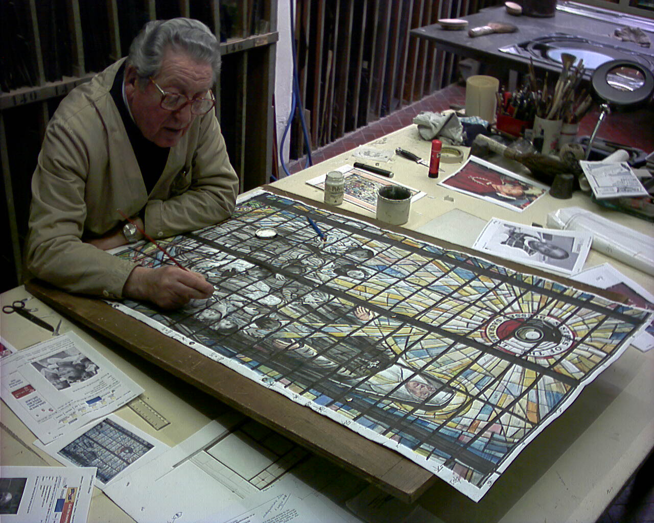 Materials: Reamy and Monaco glass, lead, Grisaille fired in the kiln.